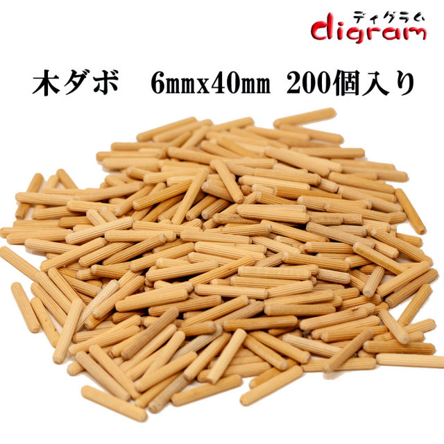 木ダボ 3種類セット6x20 6x30 6x40 各200個入り 【00598】
