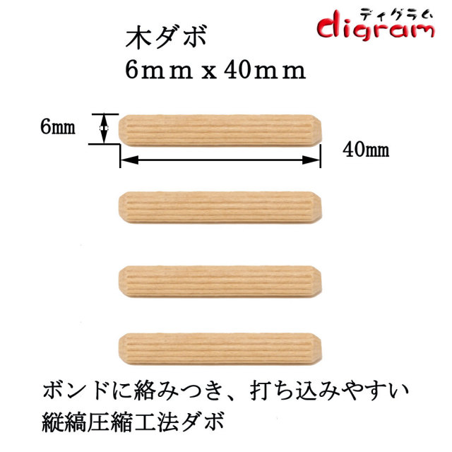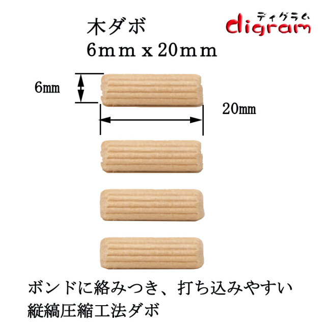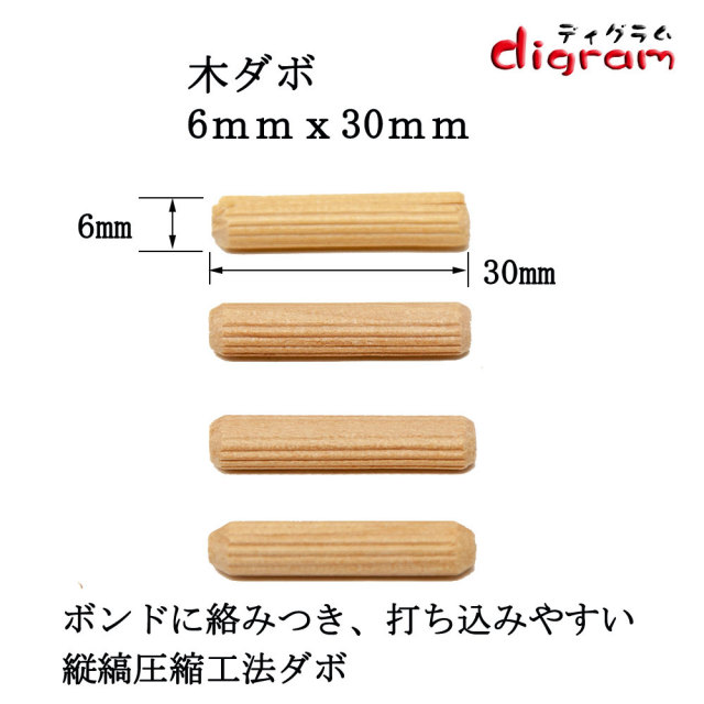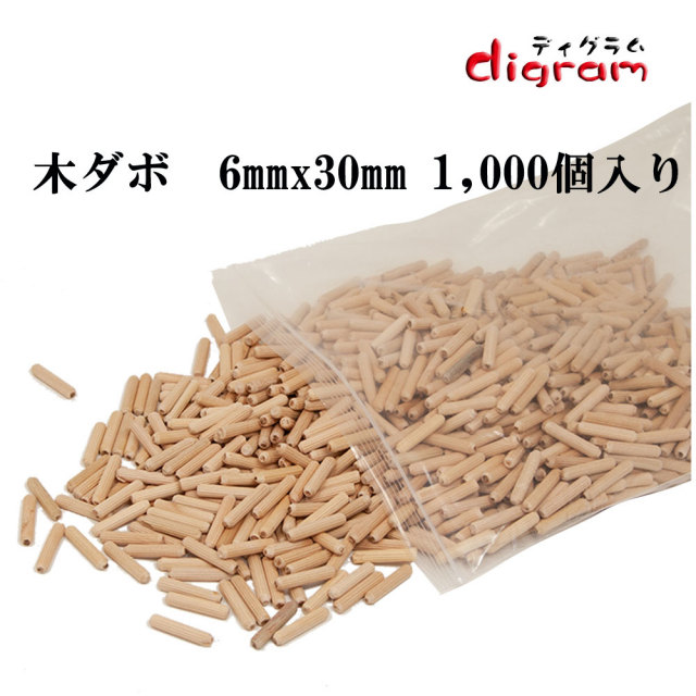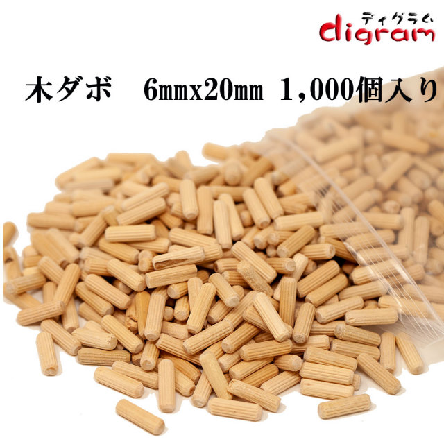 木ダボ 3種類セット6x20 6x30 6x40 各1,000個入り 【00599】
