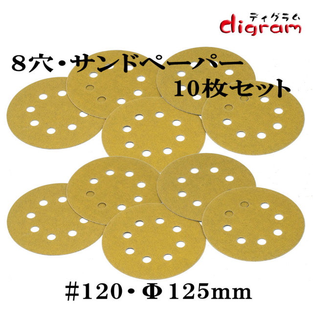 #120 ランダムアクションサンダー用 8個穴 マジックペーパー125mm 10枚組【00633】