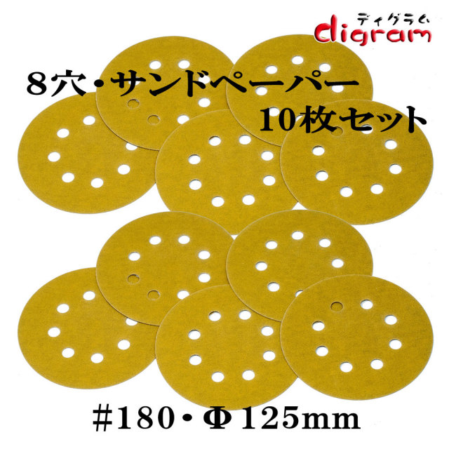 #180 ランダムアクションサンダー用 8個穴 マジックペーパー125mm 10枚組【00634】