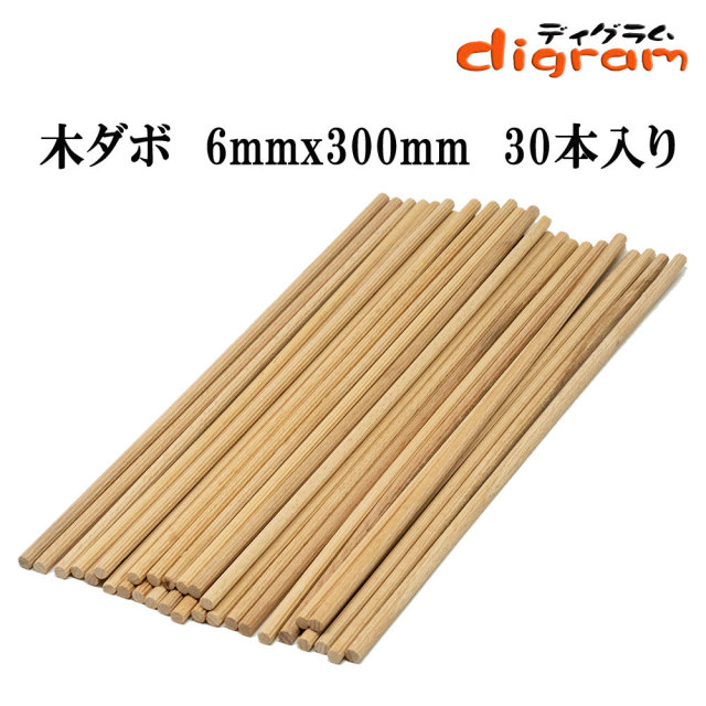 木ダボ 6mmx300mm 木釘 30個入り 【00674】