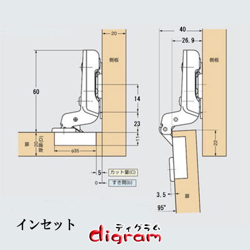 スライド 丁番 ダンパー内蔵 キャッチ付き 35φ ( インセット ) 2個セット 【TR03009】