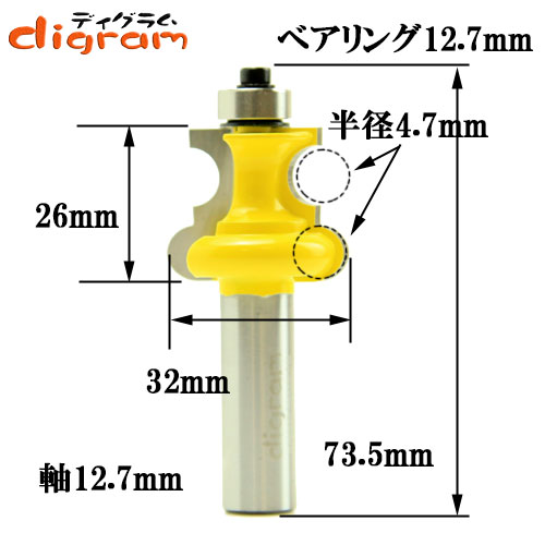 ☆ルータービットの軸軽は、1/2Shank(12.7mm)です、お間違えの無い様にお願いします。(太い1/2Shankは、安定した作業が出来ます)