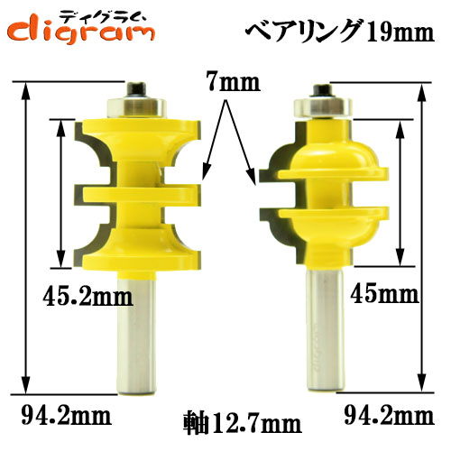 ☆ルータービットの軸軽は、1/2Shank(12.7mm)です、お間違えの無い様にお願いします。(太い1/2Shankは、安定した作業が出来ます)<BR>