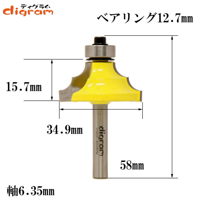 ☆ルータービットの軸軽は、1/4Shank(6.35mm)です、お間違えの無い様にお願いします。