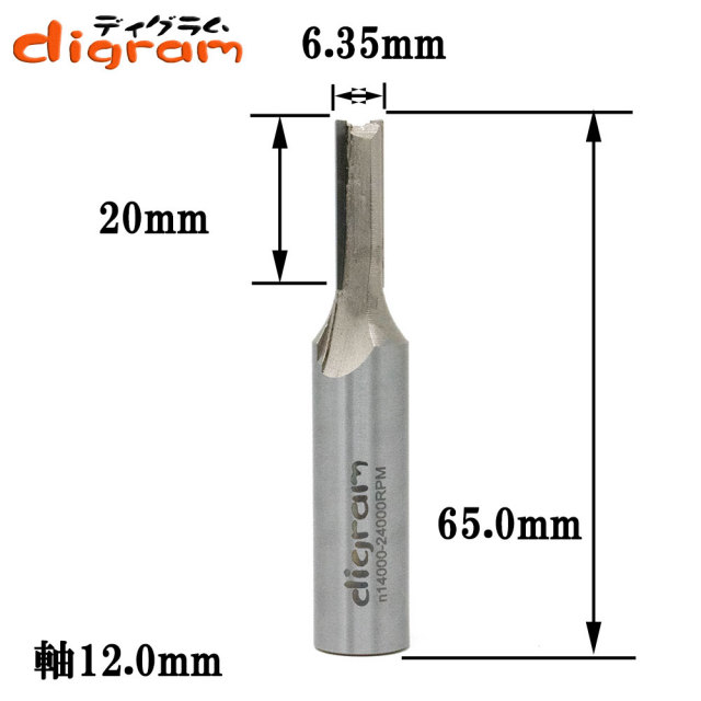 ルーター ビット ストレート 12mm軸 ( 刃径 6.35mm ) Microtungsten carbide 【dm309103】