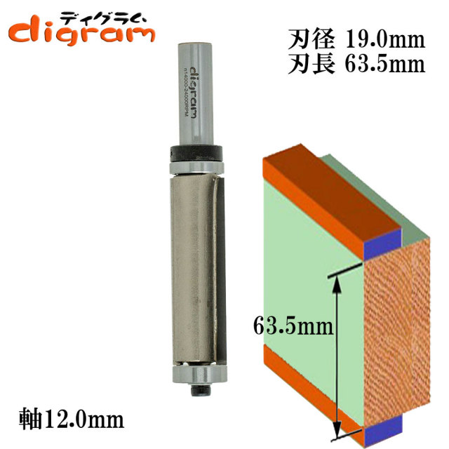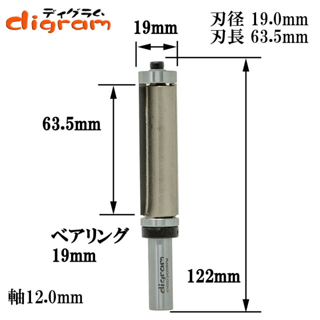 ルータービット ダブルベアリング・フラッシュトリム12mm軸(刃径19mm)Microtungstencarbide【dm309410】