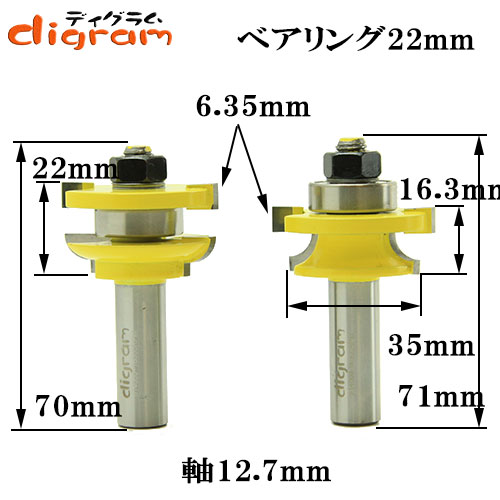 ☆ルータービットの軸軽は、1/2Shank(12.7mm)です、お間違えの無い様にお願いします。(太い1/2Shankは、安定した作業が出来ます)