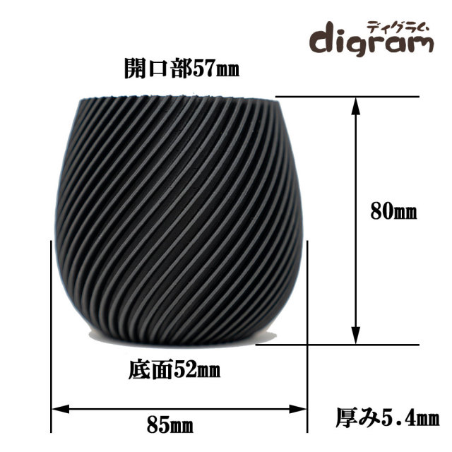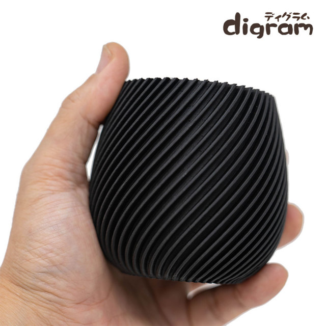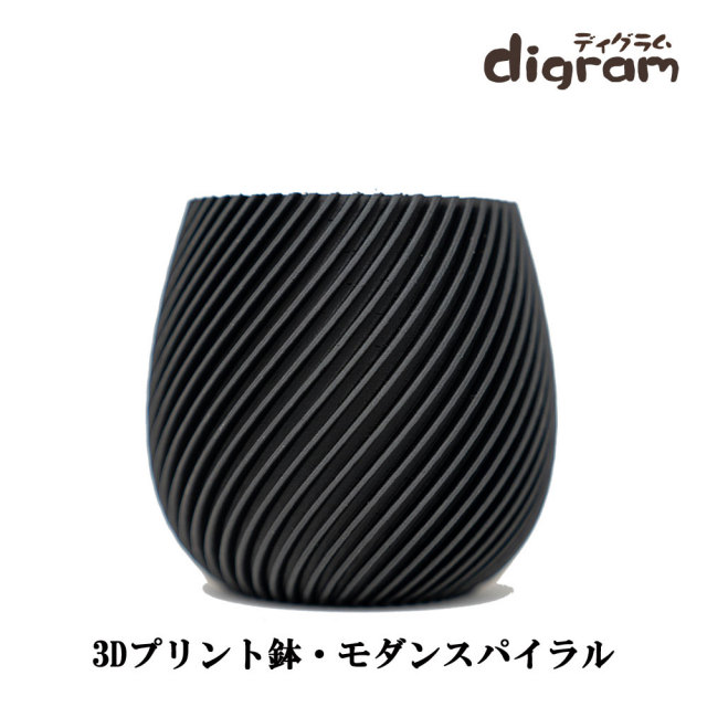 3Dプリント鉢 モダンスパイラル 高さ8cm (マットブラック)【n0011】