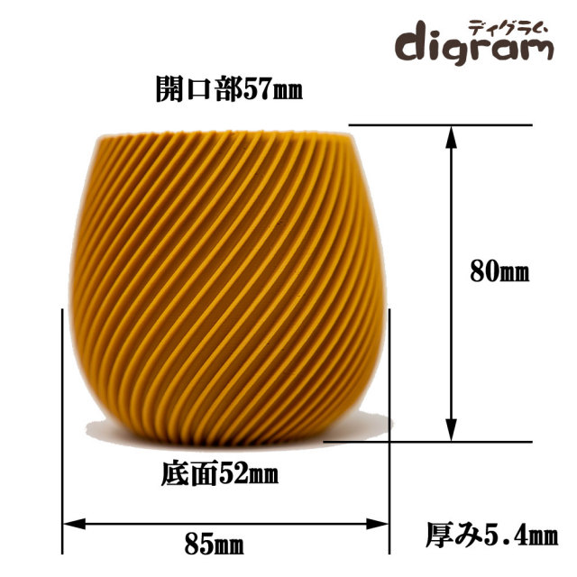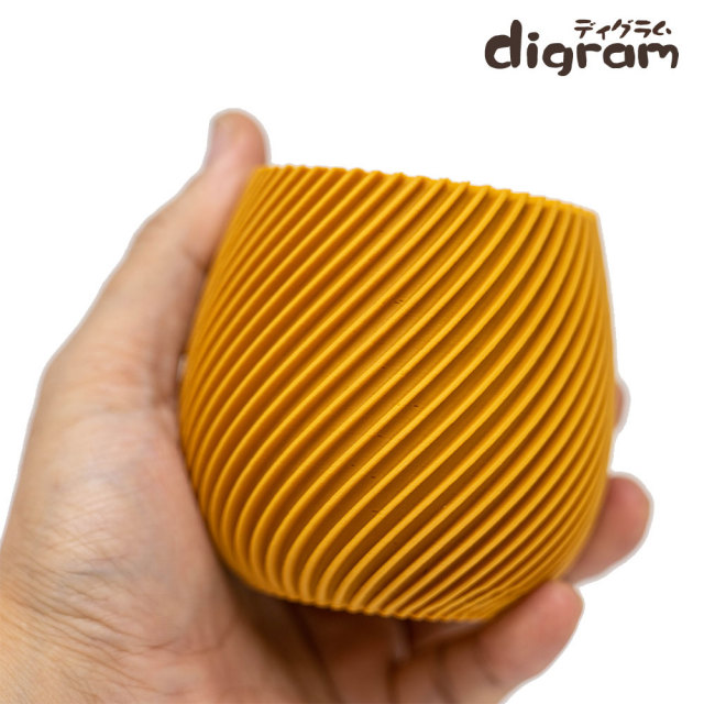 3Dプリント鉢 モダンスパイラル 高さ8cm (マットマスタード)【n0013】